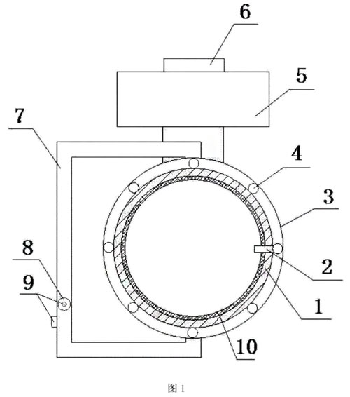 如圖1所示一種測量精確的電磁流量計,包括測量導管1,在測量導管1的外部設(shè)有勵磁線圈4,在勵磁線圈4的外部設(shè)有保護外殼3,所述的測量導管1上設(shè)有信號電極2,信號電極2與信號轉(zhuǎn)換器5連接,信號轉(zhuǎn)換器5連接智能處理器6,所述的測量導管1外側(cè)設(shè)有一導管7,該導管7的兩個接頭分別連接在測量導管1徑向的zui高點和zui低點并且與測量導管1連通,所述的導管7內(nèi)部設(shè)有一浮子8,所述的浮子8以及導管7上設(shè)有用于測量浮子8高度的高度測量器9,高度測量器9與智能處理器6連接:所述的導管7中間部分與測量導管1軸向垂直,導管7的兩個接頭與測量導管1的連接處順著水流方向傾斜:所述的傾斜角度為15°或者30°:所述的測量導管1的內(nèi)壁上設(shè)有絕緣襯里10。