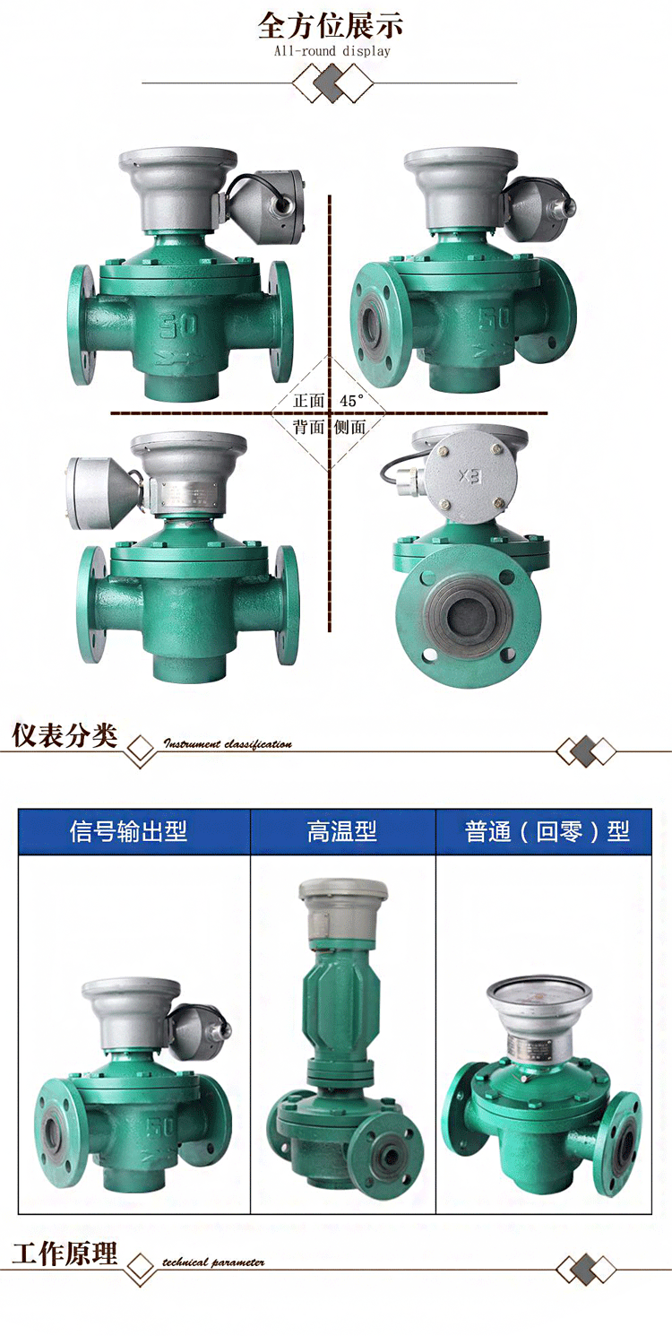 3、計量精度高,適用于高粘度介質流量的測量,但不適用于含有固體顆粒的流體(固體顆粒會將齒輪卡死,以致無法測量流量)。如果被測液體介質中夾雜有氣體時,也會引起測量誤差。