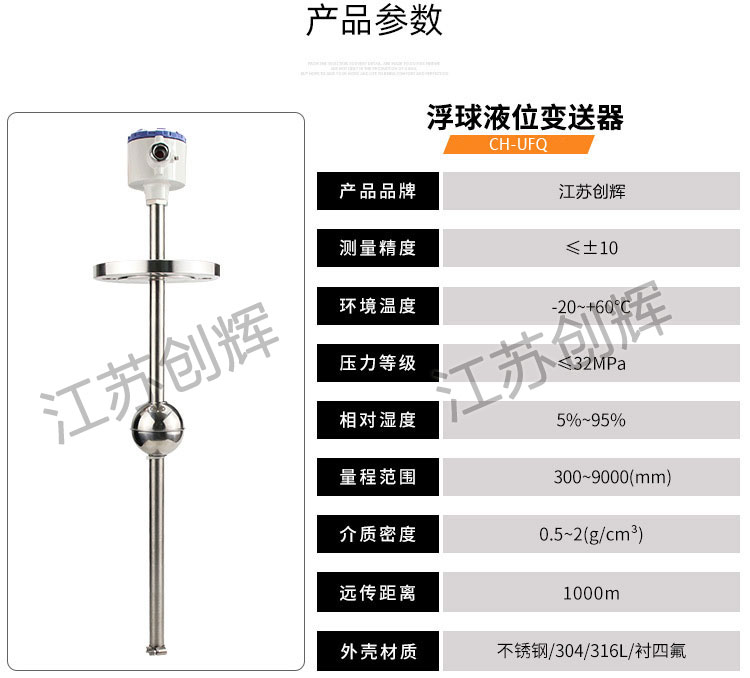 CH-UQZ磁性浮球液位計由磁浮球、傳感器、變送器三部分組成。當磁浮球隨液位變化,沿導管而上下浮動,浮球內的磁鋼吸合傳感器內相應位置上的干簧管,使傳感器的總電阻(或電壓)發生變化,再由變送器將變化后的電阻(或電壓)信號轉換成4~20mA的電流信號輸出。并可在顯示儀上設定上、下限報警,實現對液位的位式控制。